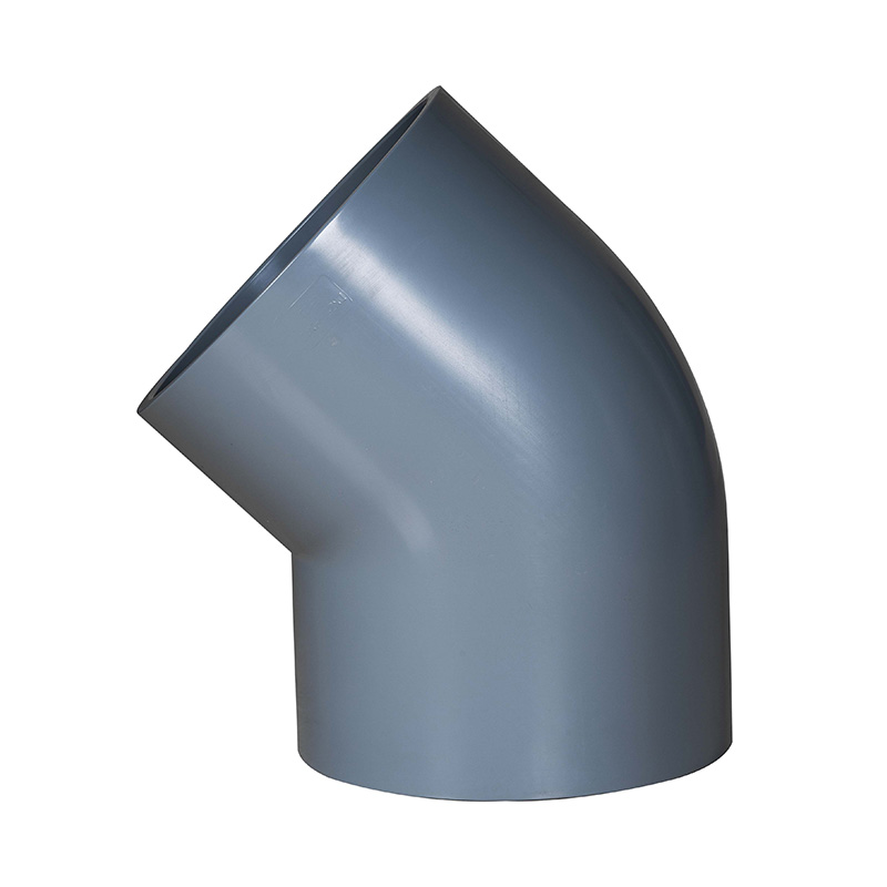 Ekstra Tahan Lama Abu-abu Muda PVC-C 45° Berbentuk siku, Ukuran Standar Profesional Perlengkapan Pipa Plastik DN15-DN600, PVC-C Konformal 45° Siku
