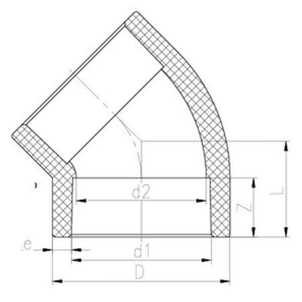Soket Meleleh Panas PPH 45° Siku DN15-100 GB Standar