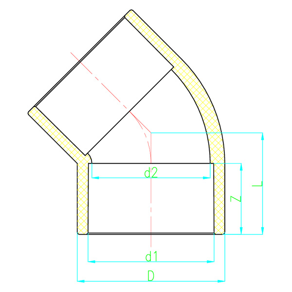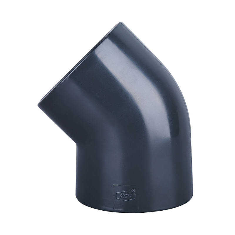 Siku Konformal PVC-U 45° Abu-abu Gelap Ekstra Tahan Lama, Perlengkapan Pipa Plastik Ukuran Standar Profesional DN15-DN600, Siku Konformal PVC-U 45°