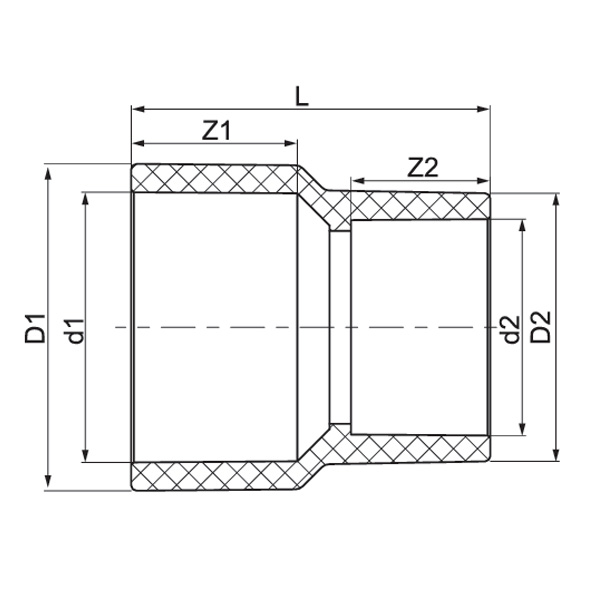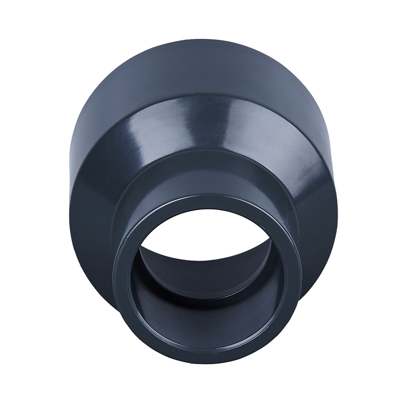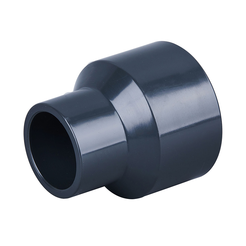 Soket Pengurang PVC-U Abu-abu Tua, DN15*20-DN600*500, Kustom 10 Inci, 12 Inci, Pemasangan Pipa Plastik Industri untuk Pasokan Bahan Kimia dan Air, Standar ANSI SCH80