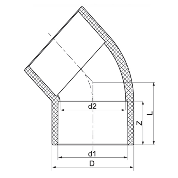 PVC-U 45°Siku DN15-600 1/2"-24" Standar ANSI
