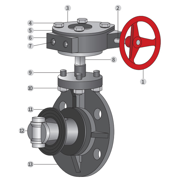 Gambar Detail Perakitan Katup Kupu-Kupu Tipe Worm-gear