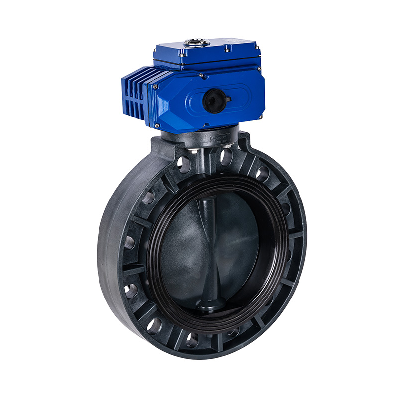 Katup Kupu-kupu Berpenggerak Listrik PVC-U, Segel Lembut Segel Tengah DN32-1000, Katup Kupu-Kupu Plastik Industri dan Perumahan Standar ANSI