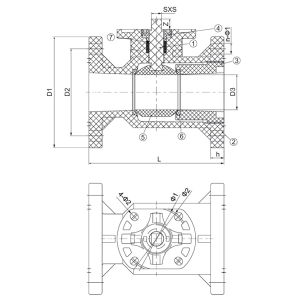 Spesifikasi D1(mm) D2(mm) D3(mm) L(mm) jam(mm) n-Φ1(mm) Φ1(mm) Φ2(mm) SXS (mm) 4-Φ2(mm) Z (mm)