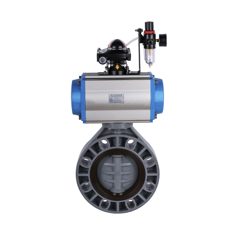 Katup Kupu-Kupu Beraktuasi Pneumatik PVC-C, Segel Lembut Segel Tengah DN32-1000, Katup Kupu-Kupu Plastik Industri dan Perumahan Standar ANSI