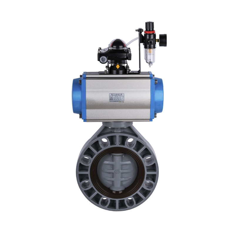 Katup Kupu-Kupu Otomatis Pneumatik PVC-C, Segel Lembut Segel Tengah, DN40-1000, Katup Plastik Industri dan Rumah Tangga, Standar JIS