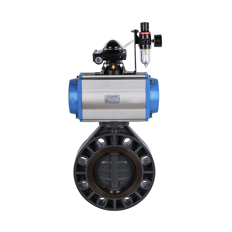Katup Kupu-kupu Digerakkan Pneumatik PVC-U, Segel Lembut Segel Tengah DN32-1000, Katup Kupu-Kupu Plastik Industri dan Perumahan Standar ANSI
