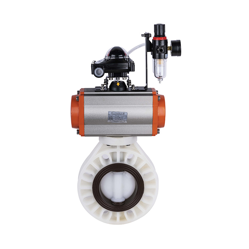 Katup Kupu-kupu Digerakkan Pneumatik PVDF, Segel Lembut Segel Tengah DN32-1000, Katup Kupu-Kupu Plastik Industri dan Perumahan Standar ANSI