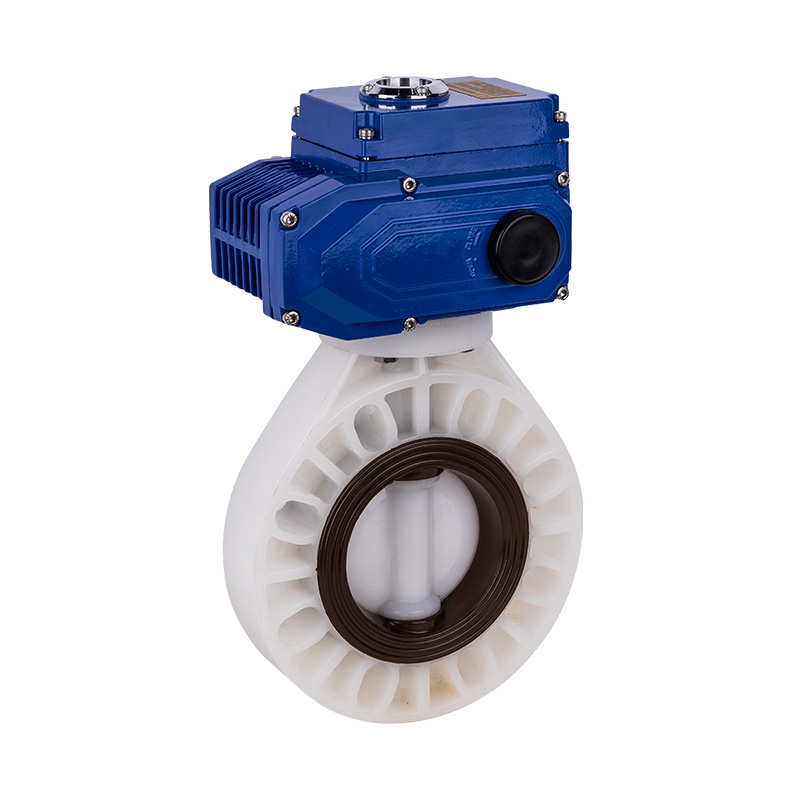 Katup Kupu-kupu Berpenggerak Listrik PVDF, Segel Lembut Segel Tengah DN32-1000, Katup Kupu-Kupu Plastik Industri dan Perumahan Standar ANSI