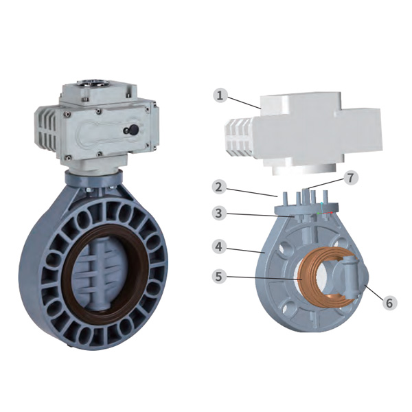 Katup Kupu-kupu Otomatis Listrik PVDF, Segel Tengah, Segel Lembut, DN32-1000, Katup Kupu-Kupu Plastik Industri dan Rumah Tangga