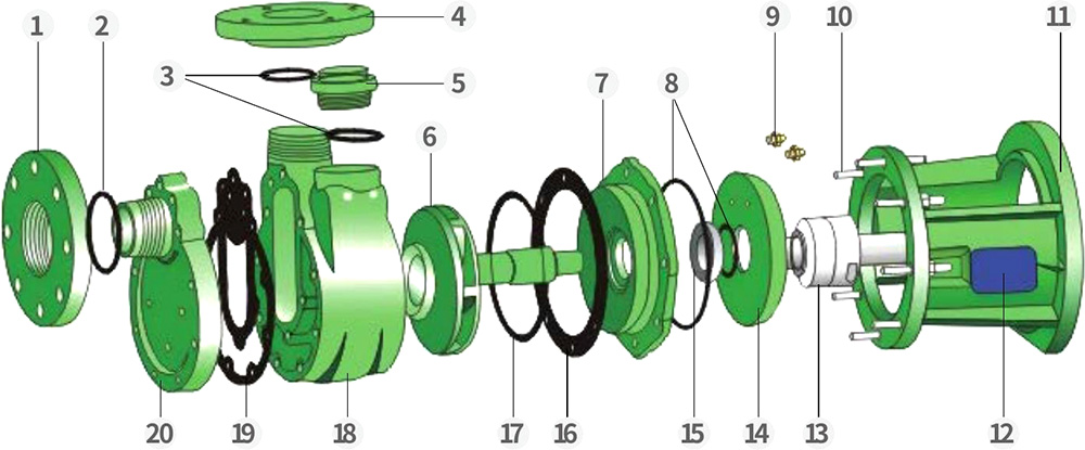 Pabrik kami mengkhususkan diri dalam pembuatan pompa sentrifugal dan self-priming yang seluruhnya terbuat dari plastik dan tahan korosi dalam dua bahan — PVDF dan FRPP — dalam empat seri (FV, FP, FVZ, FPZ). Pompa PVDF cocok untuk menangani asam kuat, oksidan kuat, halogen, hidrokarbon aromatik, senyawa alifatik, dan pelarut terklorinasi, dengan kisaran suhu pengoperasian -40°C hingga 140°C. Pompa FRPP ideal untuk alkali kuat serta asam umum, basa, garam, dan turunannya, dengan kisaran suhu pengoperasian -40°C hingga 90°C. Pompa biasanya digerakkan oleh motor tipe Y yang hemat energi. Motor tahan ledakan dapat disediakan berdasarkan permintaan.